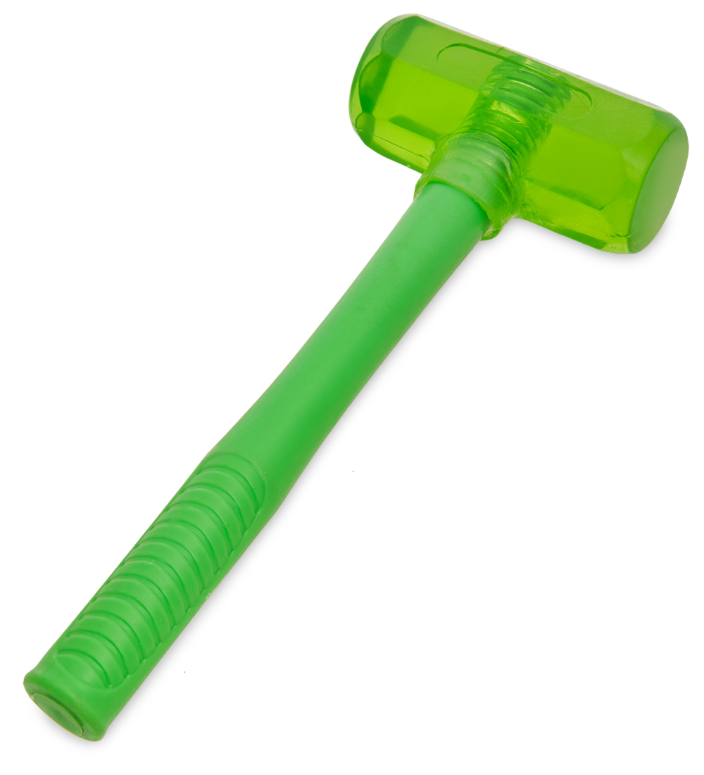 Для точных ударных работ. Боек инструмента изготовлен из силикона, он мягко и деликатно работает с поверхностями, не оставляя следов. Яркий дизайн в салатовых оттенках придает инструменту стильный вид. Пластиковая ручка позволяет амортизировать силу удара, равномерно распределяя ее на материал обработки. Ручка оборудована специальной перфорацией и не скользит в руке.