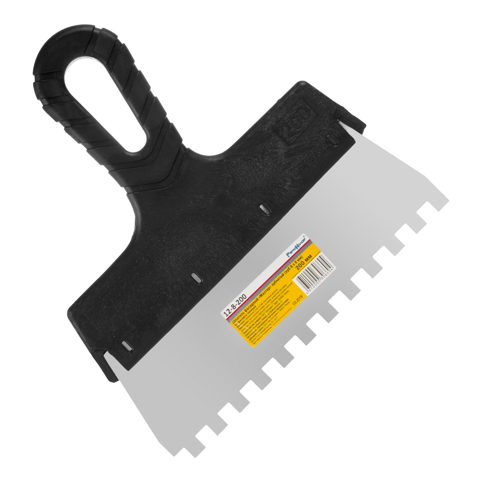 Материал: нержавеющая сталь, пластиковая рукоятка, квадратный зуб. Толщина стали – 0,4 мм. Применение: для нанесения клеевых составов, цементных монтажных смесей при укладывании кафельной плитки, приклеивании стеновых панелей.