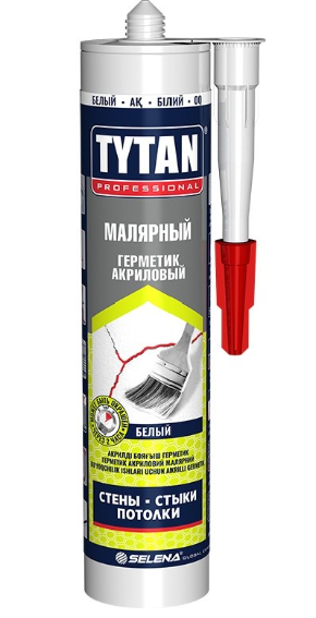TYTAN (ТИТАН) Герметик акриловый применяется для герметизации стыков, щелей и трещин различных строительных конструкций, имеющих небольшую деформацию. Отлично подходит для уплотнения швов между дверными коробками, оконными рамами, трещин в балюстрадах, подоконниках.Характеристики:- Остатки легко смываются водой;- Пластоэластичный, подходит для швов с деформацией до ±7,5%;- Влагоустойчив после отвердевания;- Глянцевый, допускает окрашивание;- Не имеет запаха;- Подходит для внутренних и внешних работ.